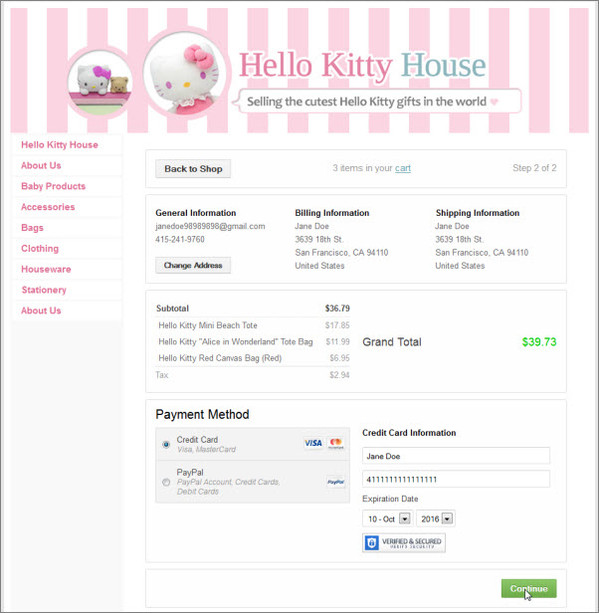 4. On the next page, the customer can enter in their payment info and then click 'Continue.'